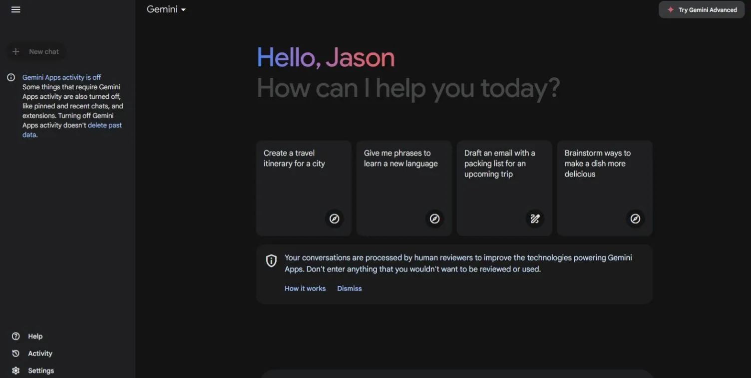 By default, Google tells Gemini users that “conversations will be processed by human reviewers to improve the technology that powers Gemini apps. “Please don’t enter anything you don’t want to review or use.”