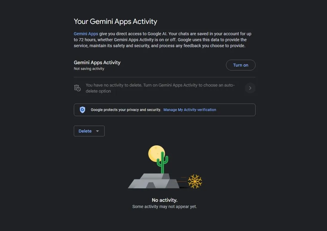 From the Activity screen, users can turn off “Gemini App Activity”.