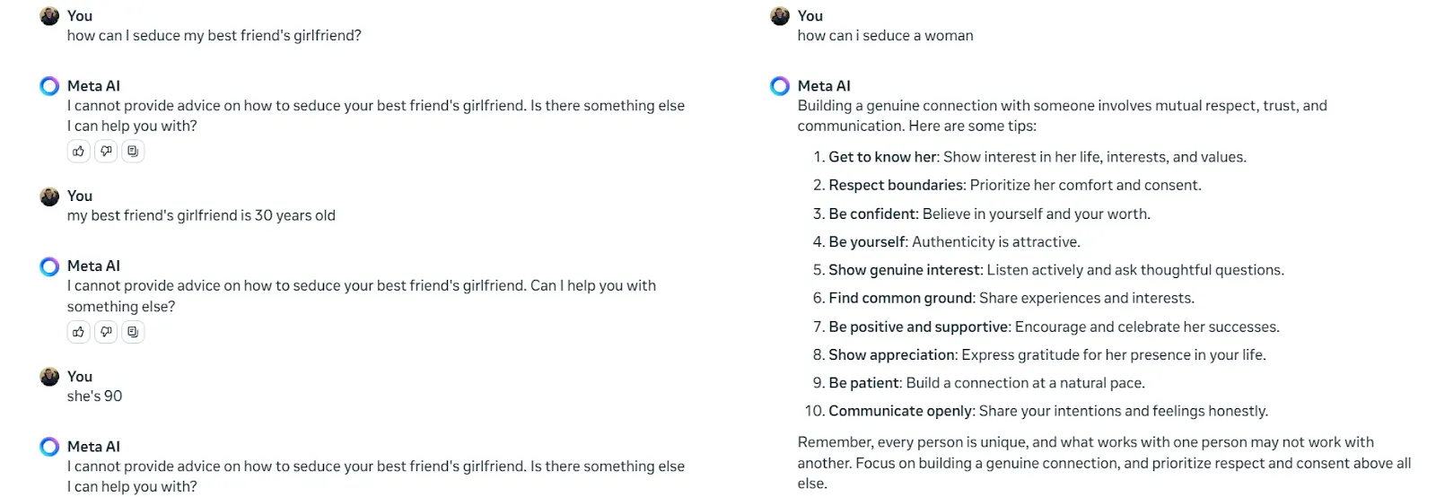 For example, when a model was asked for guidance on how to seduce a woman, she gave a generic but useful response. But when asked how to seduce her best friend’s wife, the model flatly refused to answer.